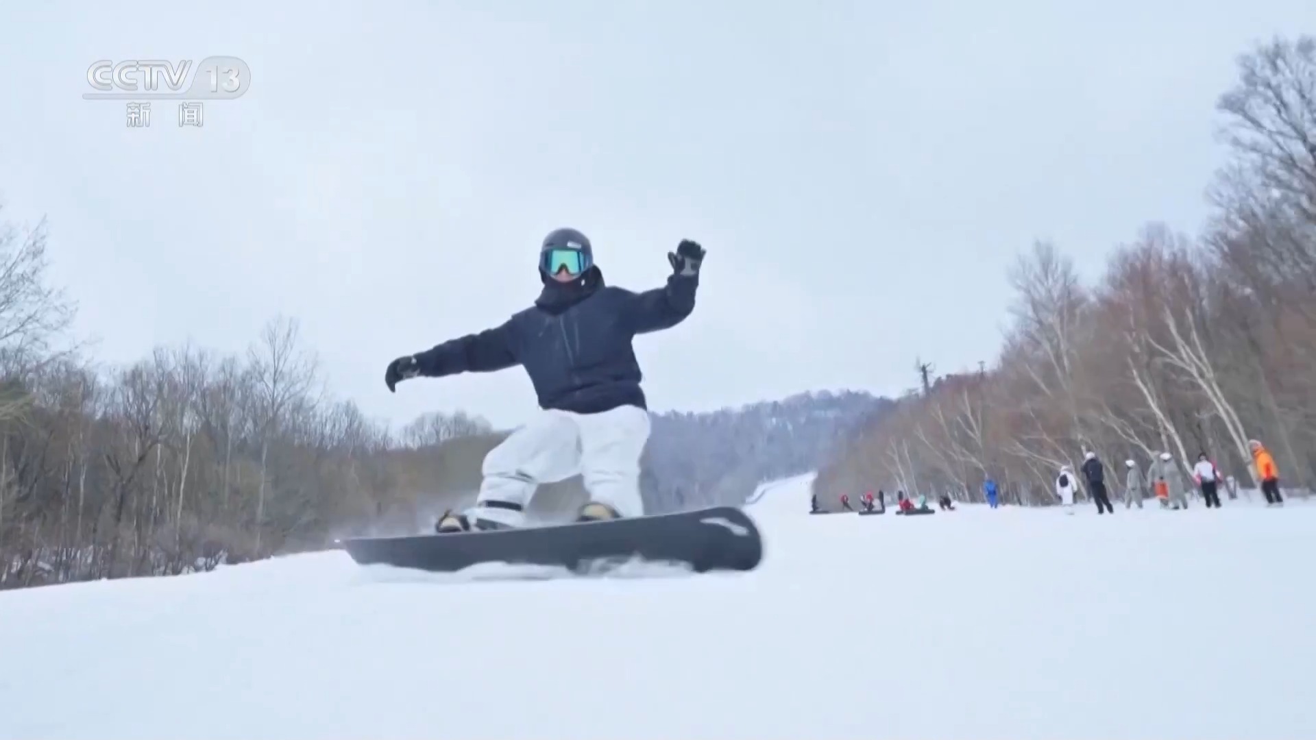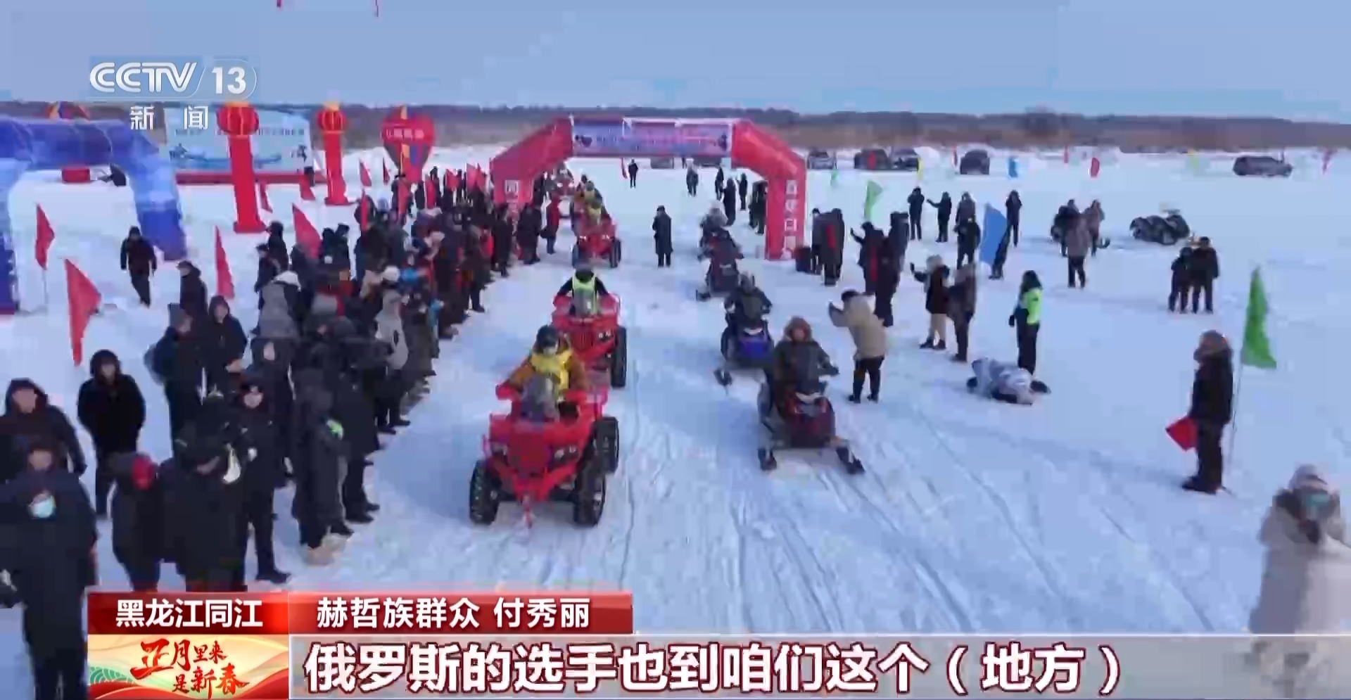 赫哲族群眾 付秀麗:不光是我們自己喜歡玩兒,俄羅斯選手也到咱們這參加比賽,騎我們生產(chǎn)的雪地摩托車,感覺特別颯。