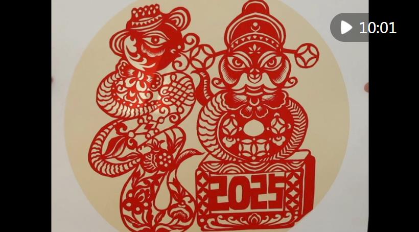 左手持紅紙,右手握剪刀,65歲的伏兆娥時(shí)而微笑、時(shí)而凝神,沉浸在創(chuàng)作之中?!八透I摺?,許仙、白娘子,“蛇盤兔”……伏兆娥制作了多幅造型各異的剪紙作品慶祝新春佳節(jié)的到來。