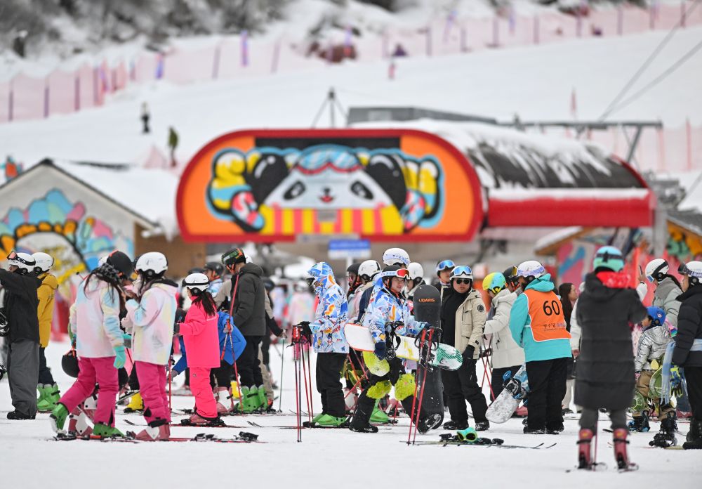 春節(jié)假期,眾多游客來到四川省阿壩藏族羌族自治州汶川縣羌人谷滑雪場游玩,在冰天雪地中歡度蛇年新春。