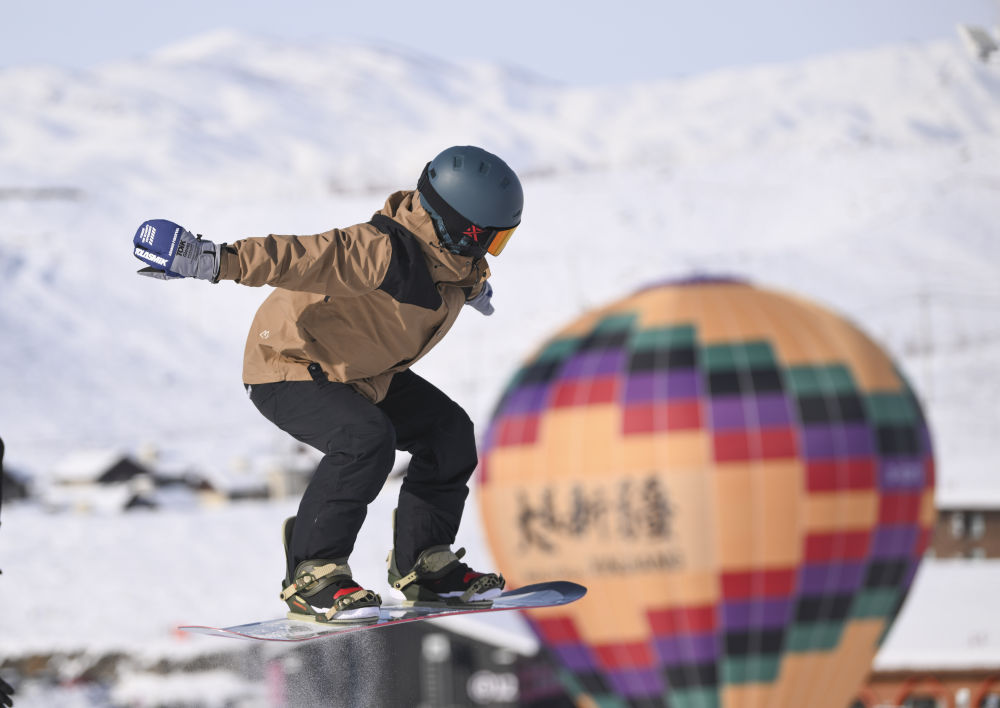 1月25日,游客在阿勒泰市將軍山國際滑雪度假區(qū)滑雪。新華社記者 胡虎虎 攝