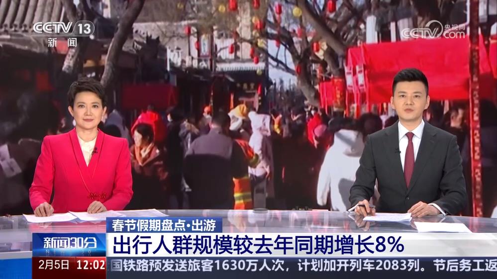 通信大數(shù)據(jù)平臺(tái)數(shù)據(jù)顯示,這個(gè)春節(jié)假期,出行人群規(guī)模較2024年同期增長(zhǎng)8%。年味游、鄉(xiāng)村游、跨城游、冰雪游、入境游,人們通過(guò)多種出游形式,感受濃濃的中國(guó)年味兒。
