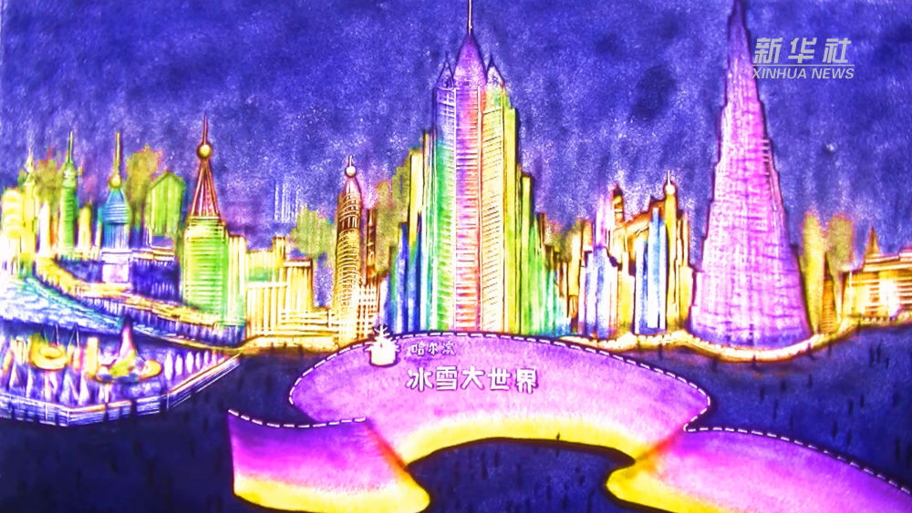 創(chuàng)意沙畫(huà)《逐夢(mèng)亞冬會(huì) 相約哈爾濱》用指尖繪就了哈爾濱的冰雪美景以及各類(lèi)冰雪競(jìng)技項(xiàng)目,振奮人心。讓我們一起為亞冬會(huì)送上一份祝福,祝愿每一位運(yùn)動(dòng)員都能在賽場(chǎng)上釋放全部能量,讓夢(mèng)想在冰天雪地中綻放最耀眼的光芒。