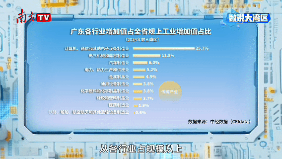 從各行業(yè)占規(guī)模以上工業(yè)增加值的比重來看,廣東的工業(yè)產(chǎn)業(yè)體系有三股強(qiáng)大支柱:傳統(tǒng)產(chǎn)業(yè)、新興產(chǎn)業(yè)、未來產(chǎn)業(yè)。