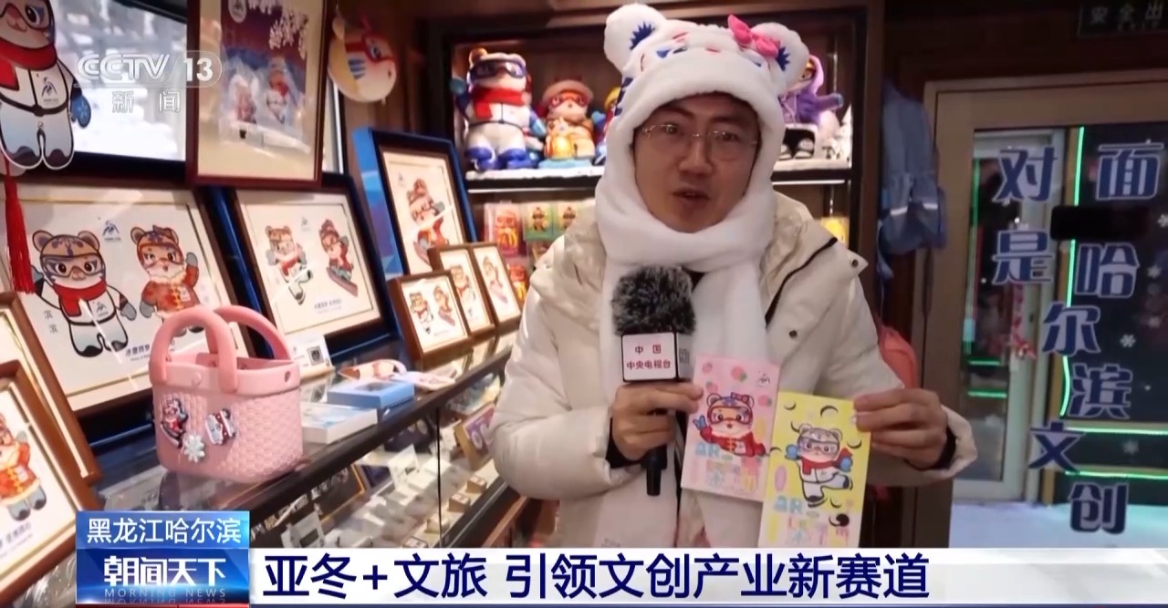 總臺記者 張程:我現(xiàn)在就位于中央大街二號的亞冬文創(chuàng)產(chǎn)品專營店,隨著亞冬會的腳步漸行漸近,同時現(xiàn)在本就是哈爾濱的冰雪文旅旺季,這里幾乎每天都是游人如織、摩肩接踵。而其中有很多爆款文創(chuàng)產(chǎn)品,現(xiàn)在已經(jīng)幾乎賣到脫銷?! ?img alt="" src="./W020250207709257686487.jpg" OLDSRC="W020250207709257686487.jpg" />