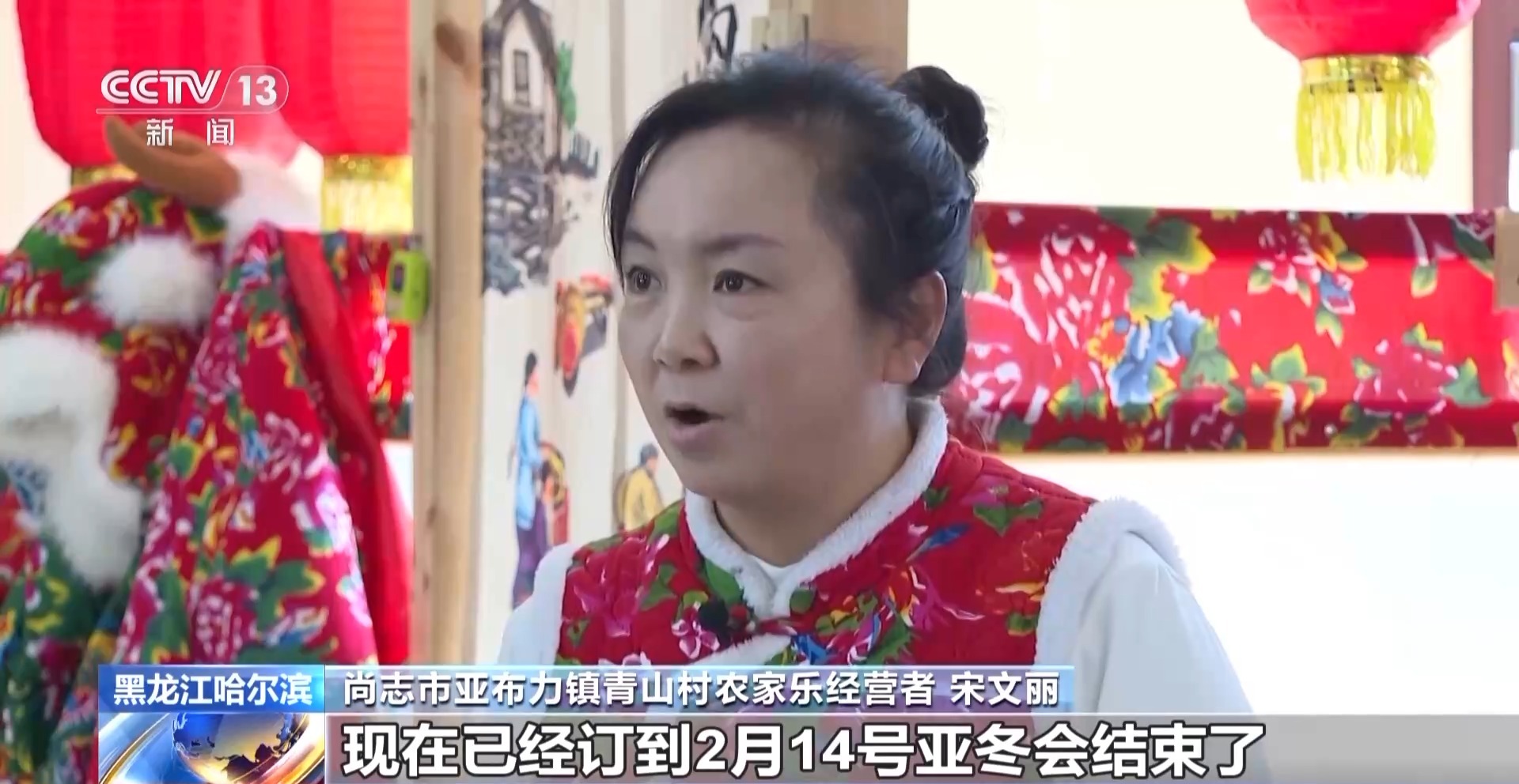 總臺記者 王海樵:現(xiàn)在一走進(jìn)村子就可以隨處看到這種掛著大紅燈籠的農(nóng)家樂和民宿,全村有300多戶人家,其中有120多戶都是從事和滑雪旅游產(chǎn)業(yè)相關(guān)的生意,如今的青山村也成為了名副其實的亞布力山下第一村?! ?img alt="" src="./W020250207709258676088.jpg" OLDSRC="W020250207709258676088.jpg" />