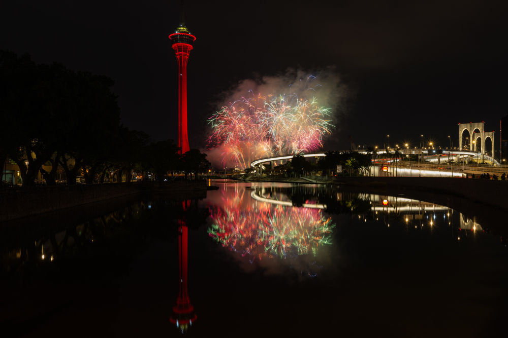 2月4日,澳門特區(qū)政府旅游局舉行的“歡樂(lè)春節(jié)靈蛇獻(xiàn)瑞煙花匯演”第二場(chǎng)在旅游塔對(duì)出海面絢麗綻放。新華社發(fā)(張金加攝)