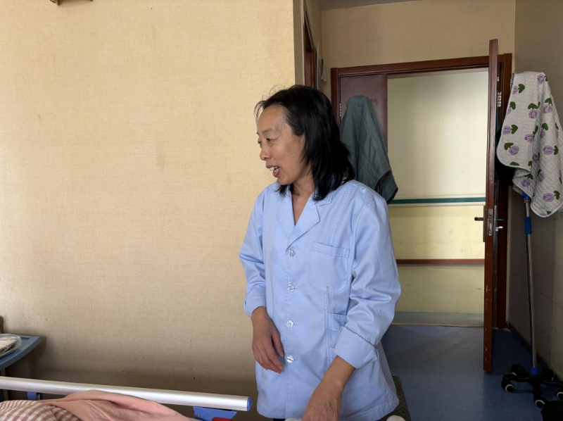 來自黑龍江省的李世娟,今年55歲,因為年紀原因本想從事育兒嫂工作的她只能從事護理工作?!凹艺菊f雇主更想要年輕些的阿姨帶孩子?!陛氜D之下,她考取了護工資格證,成為一名老年護理員?!斑@是我照顧的第二位老人”她輕聲說。第一位老人出院時,家屬本想帶她走,她婉拒了,“看著他們好起來我也高興,但這里總有更需要我的人?!闭勗掗g,90床奶奶的兒子來探望老母親,輕摸著奶奶的頭一遍又一遍地問著“睜眼看看,我是誰呀”,奶奶也是含糊不清地說著“不知道”,兒子半開玩笑地說“傻老太太”。李世娟在一旁緊忙說:“你不要說她傻啊,糊涂啊,因為患有阿爾茲海默癥的人有時是清醒的,一聽你說她傻她就覺得自己好像是傻了”,李世娟向記者說,自己平日很喜歡看健康教育節(jié)目,見到認識的人也會多科普幾句,“我姑娘說,媽你別老給人家上課,我說媽那不是上課,只是想把自己知道的分享給人家”,李世娟一邊說,一邊難掩苦笑。