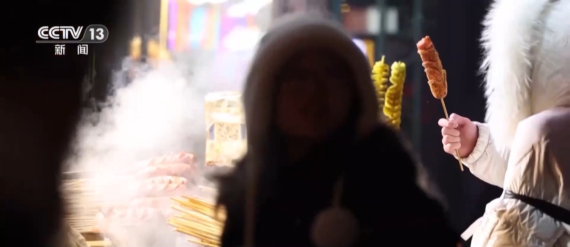在前面不遠(yuǎn)處,還有紅腸飄來的陣陣香氣。紅腸作為哈爾濱特色美食,有著百年歷史,是游客必嘗的美味。美食和冰雪旅游在這里相互交融,為哈爾濱的夜晚增添了別樣的煙火氣。