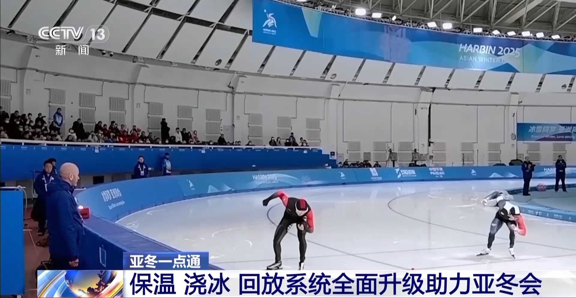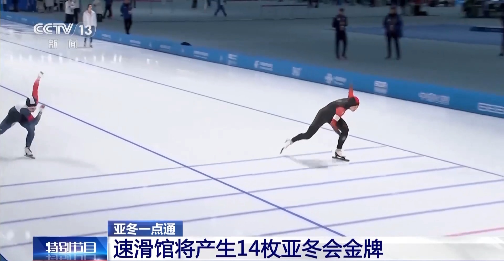 總臺記者 季熠非:位于哈爾濱市的黑龍江省冰上訓練中心速滑館,今天在這里進行的是亞冬會女子500米、男子5000米和女子短距離團體追逐的三項比賽。