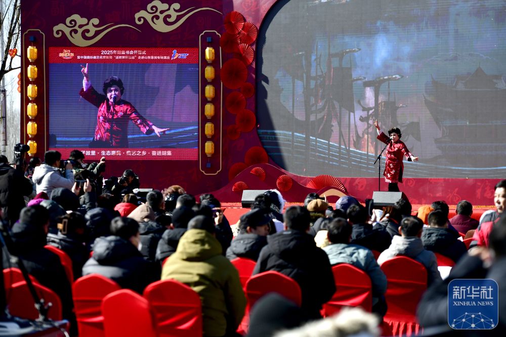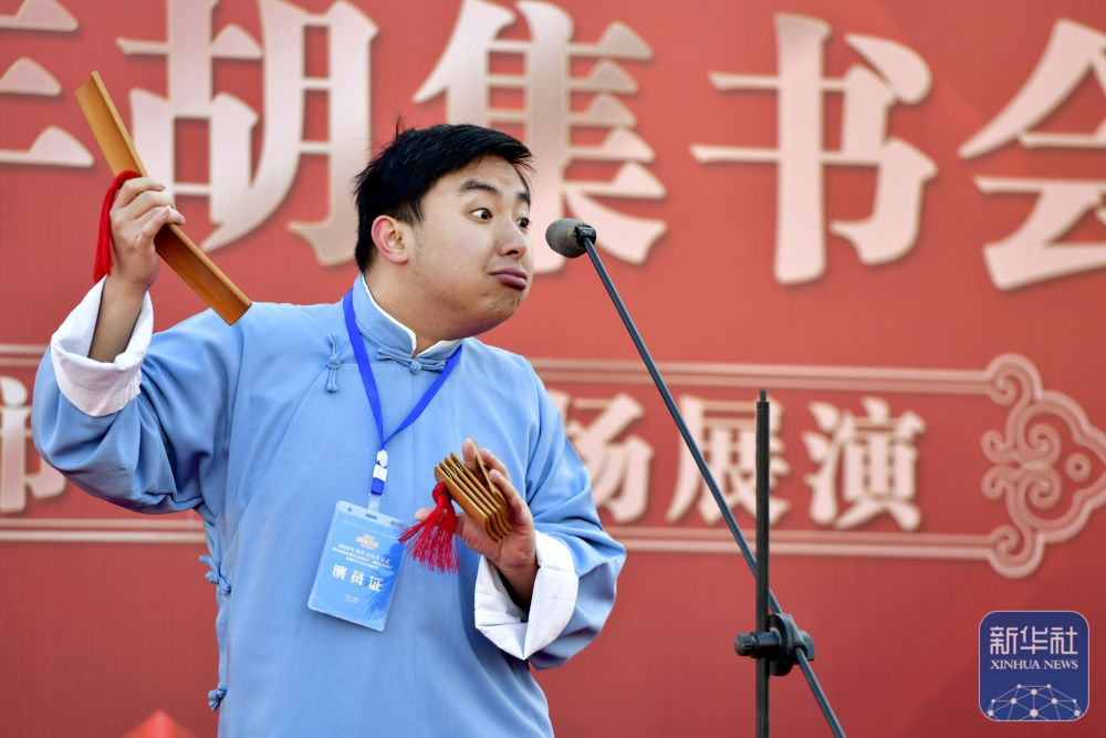 當(dāng)日,有著800余年歷史的胡集書會在山東省濱州市惠民縣開幕。中國曲協(xié)“送歡笑到基層”名家新秀的精彩演出和來自天南海北曲藝藝人的說書獻(xiàn)藝匯成“曲山藝?!?,為群眾獻(xiàn)上了一道文化盛宴。