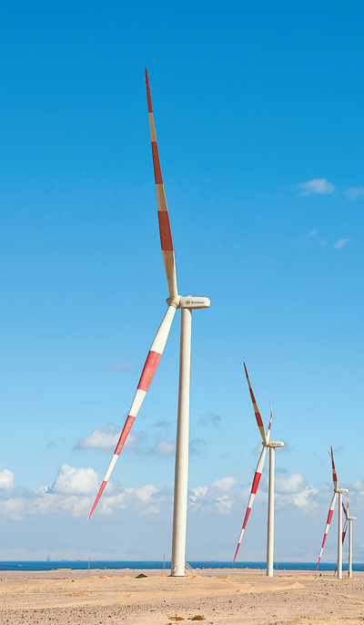 蘇伊士灣風(fēng)電項(xiàng)目位于埃及首都開(kāi)羅以南約300公里的蘇伊士灣西岸小鎮(zhèn)拉斯·加里卜。項(xiàng)目共有77臺(tái)風(fēng)電機(jī)組,建成后預(yù)計(jì)每年可生產(chǎn)約27億千瓦時(shí)的清潔電力,實(shí)現(xiàn)二氧化碳減排約100萬(wàn)噸。穆罕默德說(shuō):“在這片曠野上工作,把蘇伊士灣的風(fēng)轉(zhuǎn)化成電能,‘點(diǎn)亮’萬(wàn)家燈火,我感到十分驕傲?!?/p>