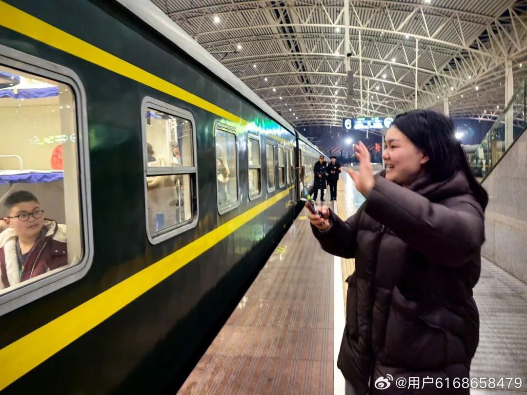 母親輕輕地揮了揮手,目送心中的牽掛踏上歸途的列車。