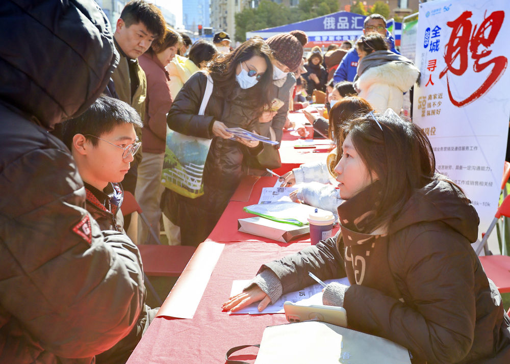 2月8日,求職者在南京市鼓樓區(qū)舉辦的“春風(fēng)行動(dòng)”專(zhuān)場(chǎng)招聘會(huì)上了解招聘信息。新華社發(fā)(蘇陽(yáng)攝)