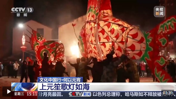 中國(guó)社會(huì)科學(xué)院民族文學(xué)研究所研究員、北京民間文藝家協(xié)會(huì)副主席 毛巧暉:相傳在漢代我們就有過元宵節(jié)的習(xí)俗,但當(dāng)時(shí)是叫“正月十五”或者叫“正月望”。這個(gè)燈,可能和中國(guó)上古對(duì)火的崇拜有很大的關(guān)系,后來(lái)也跟傳入的佛教文化結(jié)合,逐步形成了觀燈賞燈的習(xí)俗。燈又和中國(guó)的“丁”是諧音,寓意吉祥,添丁進(jìn)口,人丁興旺。