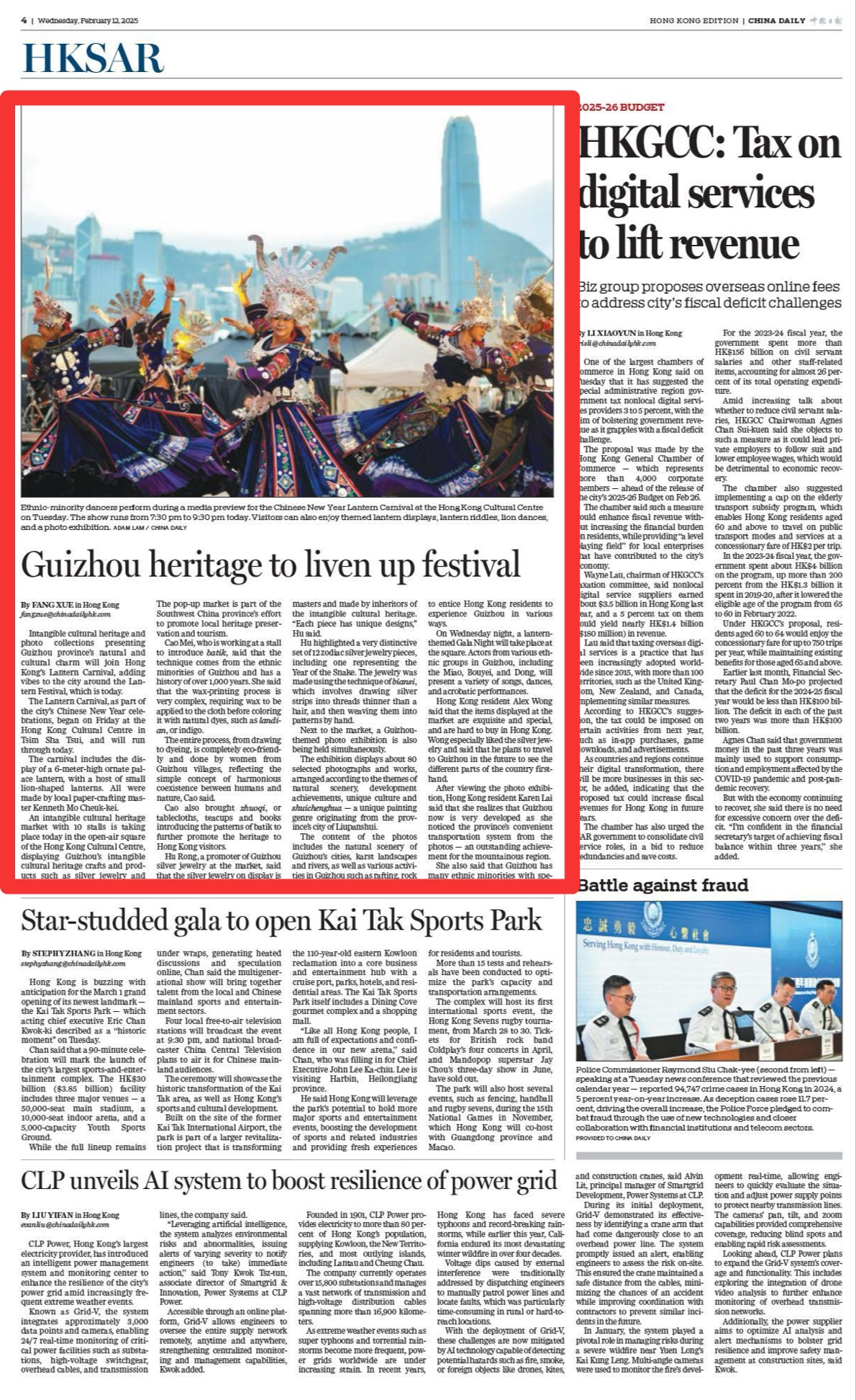 Dancers perform on stage at media preview by the Leisure and Cultural Services Department on Feb 11, 2025. (ADAM LAM / CHINA DAILY)