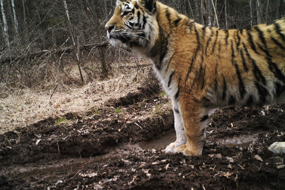 這是紅外相機(jī)在東北虎豹國(guó)家公園龍江森工綏陽(yáng)片區(qū)拍攝的野生東北虎(2023年4月29日攝)。新華社發(fā)(龍江森工集團(tuán)綏陽(yáng)林業(yè)局公司供圖)