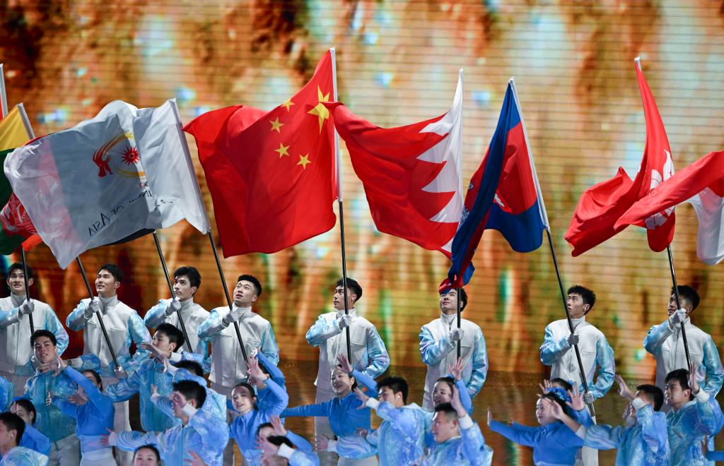 這是2月14日拍攝的各體育代表團(tuán)入場環(huán)節(jié)。當(dāng)日,第九屆亞洲冬季運(yùn)動(dòng)會(huì)閉幕式在哈爾濱舉行。新華社記者 黃博涵 攝