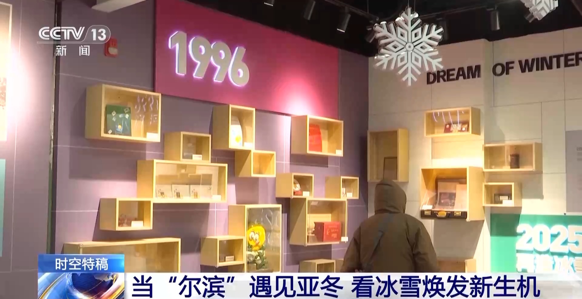 總臺(tái)央視記者 鄭怡哲:看完了亞布力的絕美雪景和熱鬧非凡的雪場(chǎng),讓我們回到哈爾濱的市區(qū)來(lái)看一看。那要說(shuō)什么地方最能體現(xiàn)黑龍江哈爾濱兩屆亞冬會(huì)城市這一端的變化,那一定是這個(gè)雙亞冬的紀(jì)念館,其實(shí)我覺得從紀(jì)念品上就能看出這個(gè)城市的特點(diǎn)和發(fā)展脈絡(luò)。