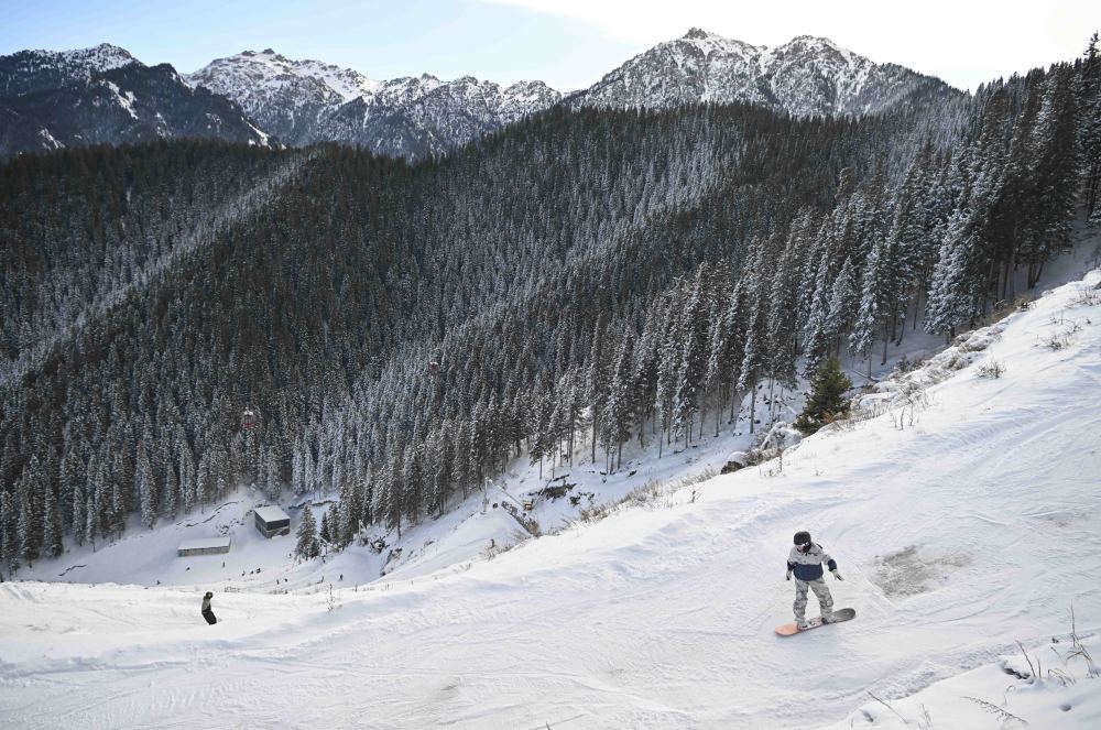 在烏魯木齊縣水西溝鎮(zhèn)平西梁村民宿的天臺南望,群山間的銀色雪道如絲帶自山頂蜿蜒而下,那是新疆首家5S級滑雪場——絲綢之路山地度假區(qū),每個雪季都能迎來三四十萬名雪友。