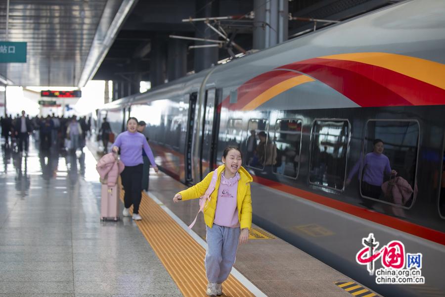 2025年春運期間,旅客在贛州西站登乘智能復興號列車。中國網(wǎng)發(fā) 鄒陽/攝