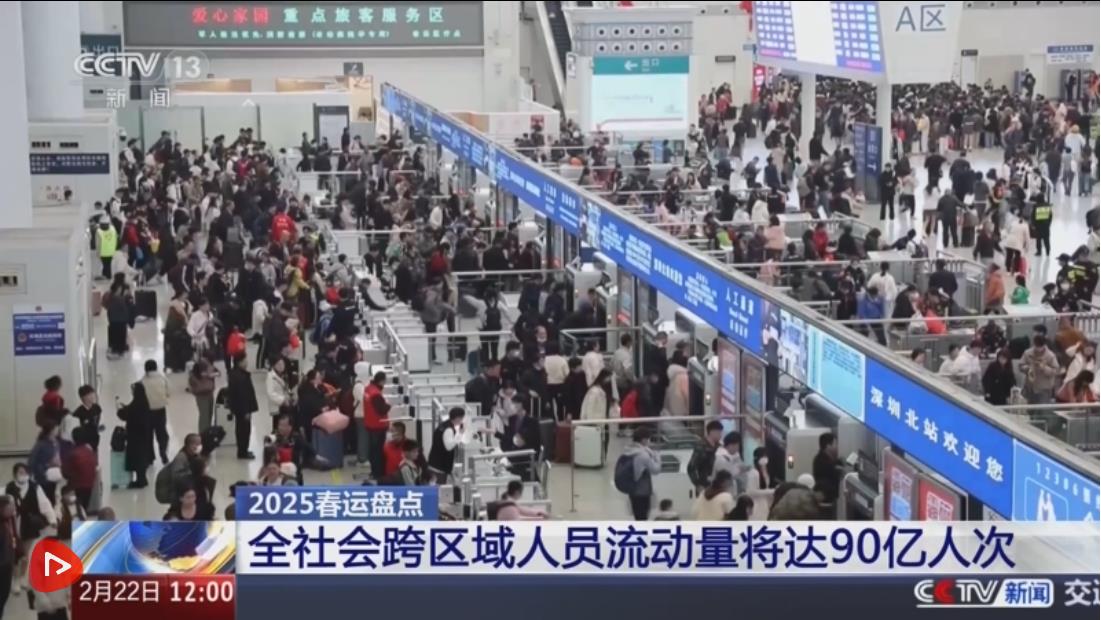 歷時40天的2025年春運2月22日將結束。今年春運從1月14日開始,多項數(shù)據(jù)創(chuàng)歷史新高。交通運輸部預計,整個春運期間,全社會跨區(qū)域人員流動量將達90億人次。