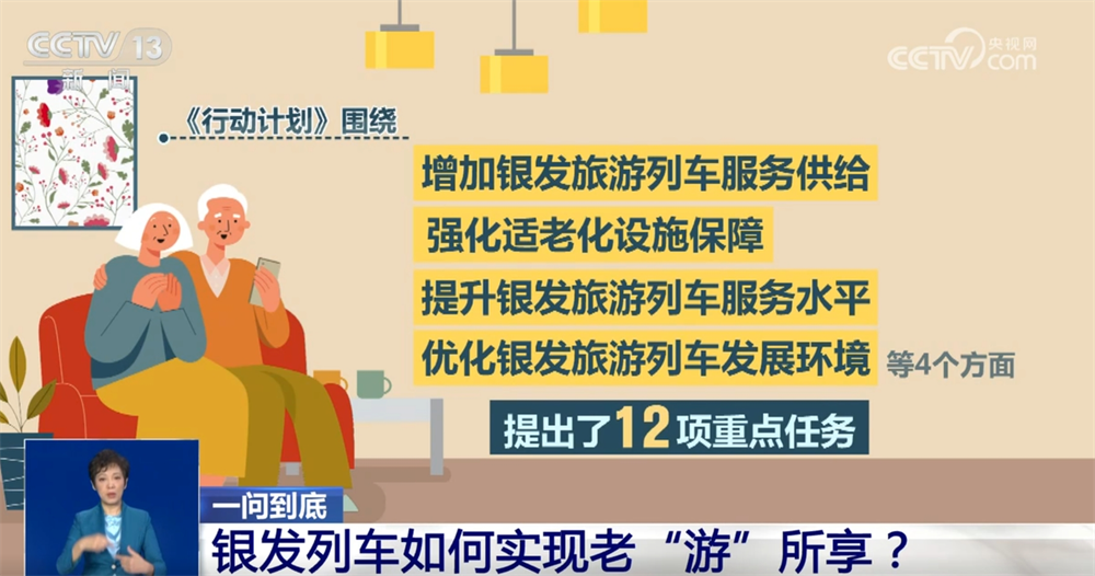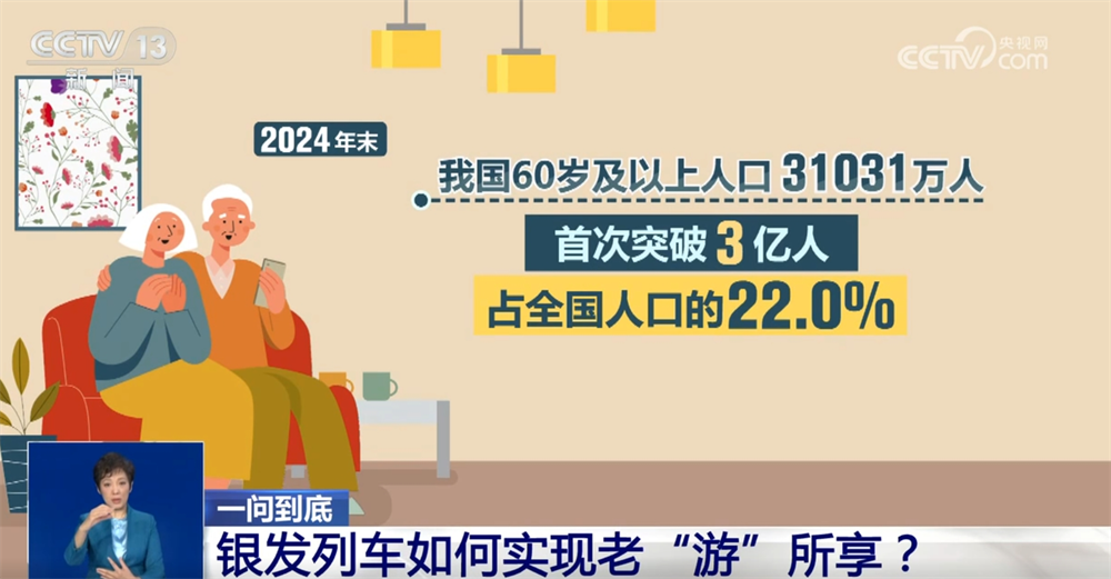數據顯示,2024年末,我國60歲及以上人口達到31031萬人,首次突破3億人,占全國人口的22.0%,老年人對旅游服務的需求也日益增長。正是為了應對這一需求,今年年初,商務部等九單位發(fā)布《關于增開銀發(fā)旅游列車促進服務消費發(fā)展的行動計劃》,圍繞增加銀發(fā)旅游列車服務供給、強化適老化設施保障、提升銀發(fā)旅游列車服務水平、優(yōu)化銀發(fā)旅游列車發(fā)展環(huán)境等4個方面,提出了12項重點任務。精準對接老年群體的旅游訴求,乘坐高鐵實現“快旅慢游”,讓他們更舒適地追尋“詩和遠方”。那么,銀發(fā)列車和普通列車有何區(qū)別?都能開去哪兒?車票怎么買?乘坐銀發(fā)列車要注意什么?接下來一問到底。