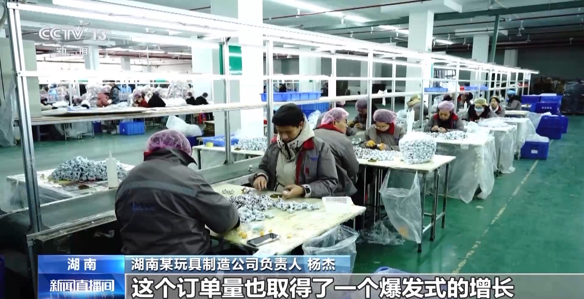 湖南某玩具制造公司負(fù)責(zé)人 楊杰:《哪吒2》爆火之后,我們企業(yè)的訂單量也取得了爆發(fā)式的增長(zhǎng),也為我們后面的發(fā)展提供了很多方向。現(xiàn)在國(guó)內(nèi)的訂單,我們4月份都將近排滿了。然后我們現(xiàn)在又接到國(guó)外,像北美、俄羅斯、東南亞激增的訂單量需求。