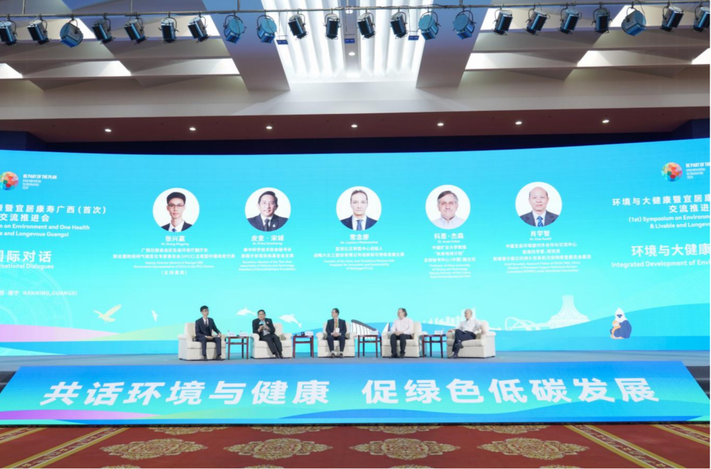 2024年5月18日,張興贏(左一)在環(huán)境與大健康暨宜居康壽廣西交流推進(jìn)會(huì)上主持國(guó)際對(duì)話會(huì)。新華社發(fā)