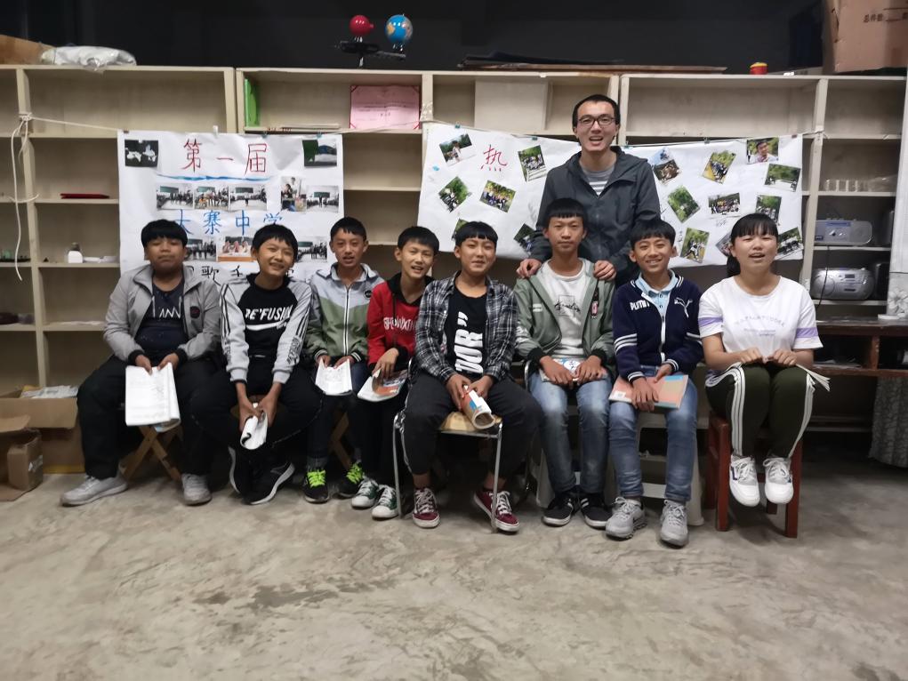 圖為李微楠和云南省臨滄市云縣大寨鎮(zhèn)大寨中學(xué)的學(xué)生在一起。(受訪者供圖)