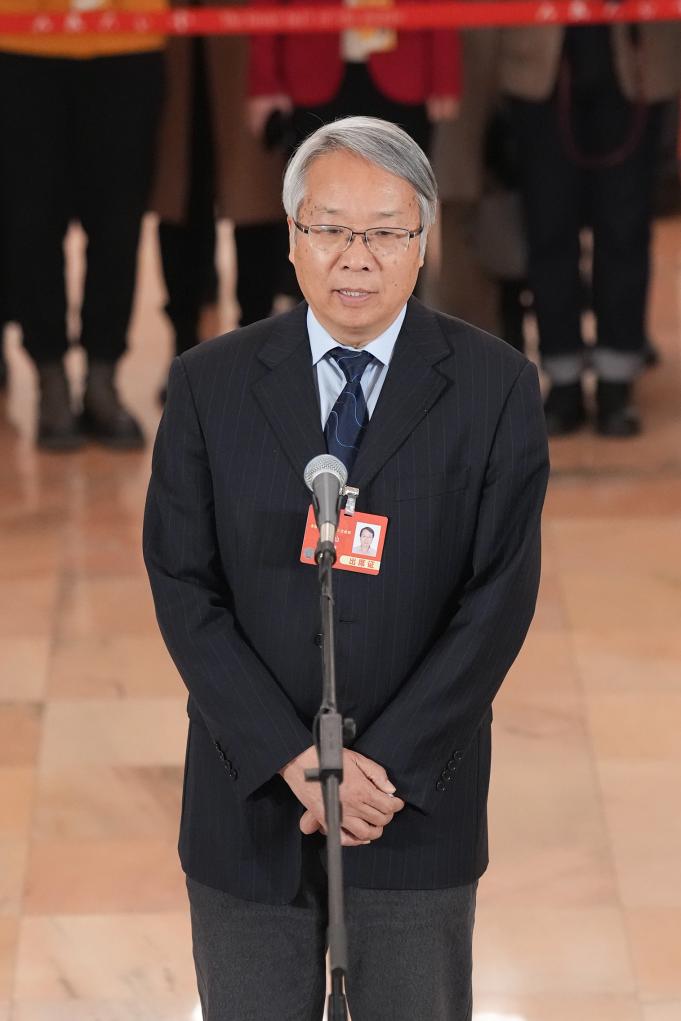 3月10日,全國政協(xié)十四屆三次會議第三場“委員通道”集體采訪活動在北京人民大會堂舉行。這是全國政協(xié)委員陳星燦接受媒體采訪。新華社記者 才揚 攝