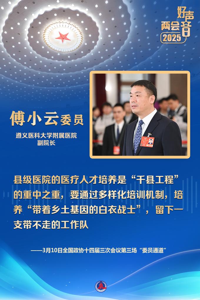 “國家持續(xù)實施‘千縣工程’,開展醫(yī)療人才‘組團式’支援幫扶,支援西藏、新疆、青海等地區(qū)醫(yī)院和國家鄉(xiāng)村振興重點幫扶縣人民醫(yī)院。”遵義醫(yī)科大學附屬醫(yī)院副院長傅小云委員說。
