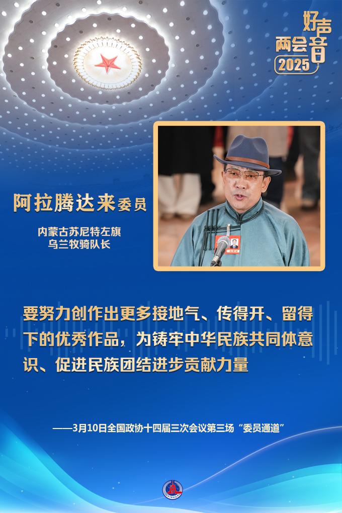 “在內蒙古大地上,活躍著75支烏蘭牧騎隊伍,有3000多名隊員,每年開展演出1萬多場?!卑⒗v達來委員說,要努力創(chuàng)作出更多接地氣、傳得開、留得下的優(yōu)秀作品,為鑄牢中華民族共同體意識、促進民族團結進步貢獻力量。