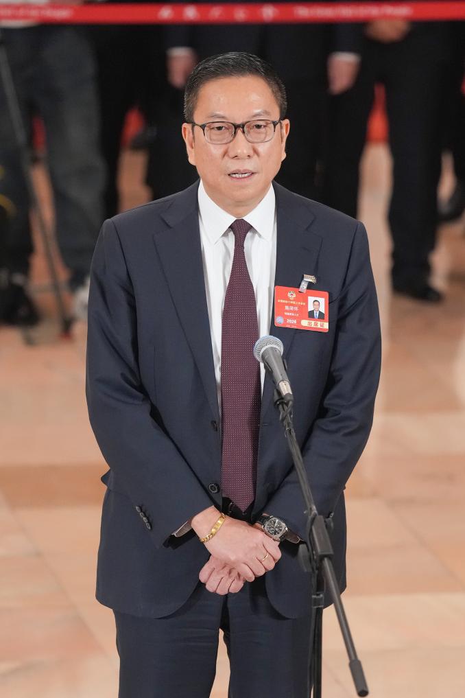 3月10日,全國政協(xié)十四屆三次會議第三場“委員通道”集體采訪活動在北京人民大會堂舉行。這是全國政協(xié)委員施榮懷接受媒體采訪。新華社記者 才揚 攝