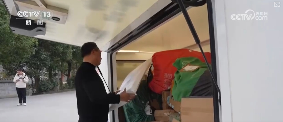 下午3時,在湖北省咸寧市崇陽縣肖嶺鄉(xiāng)泉陂村農(nóng)村寄遞物流綜合服務(wù)點,負(fù)責(zé)人陳輝與這臺無人駕駛配送車準(zhǔn)時碰頭。