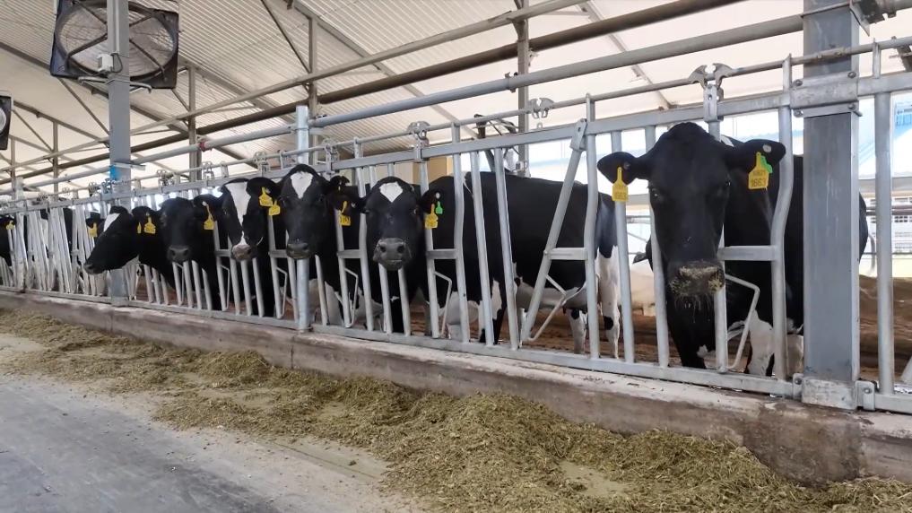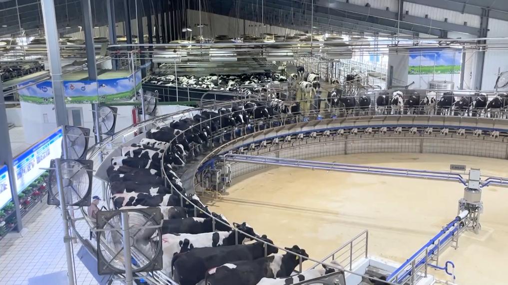在蜂蜜香氣的吸引下,一頭頭奶牛走向無人擠奶機(jī),機(jī)械臂靈敏地進(jìn)行消毒、套杯、擠奶,新鮮牛奶便源源不斷生產(chǎn)出來。