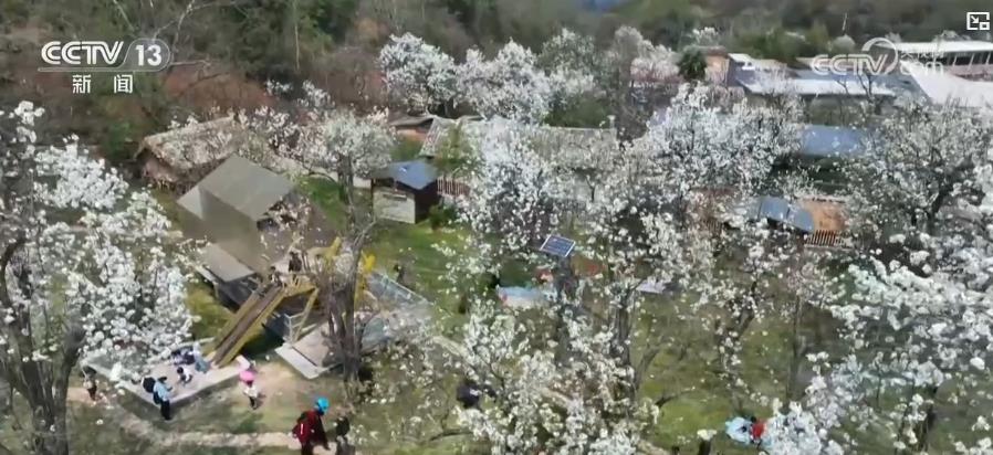 近年來(lái),當(dāng)?shù)匾曰槊?,大力發(fā)展“賞花經(jīng)濟(jì)”,將賞花和河灘游船、鄉(xiāng)村茶館等打卡點(diǎn)串聯(lián),打造以觀賞游玩和生態(tài)休閑為一體的游玩路線。每年梨花盛開(kāi)期都能吸引大批游客,帶動(dòng)當(dāng)?shù)孛袼蕖⒉惋嫎I(yè)發(fā)展,促進(jìn)村民增收。