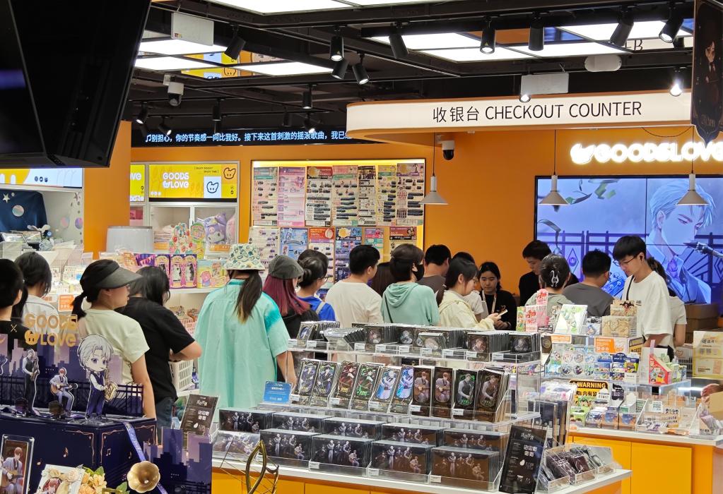 年輕人在合肥百盛購(gòu)物中心的二次元品牌店鋪排隊(duì)購(gòu)買產(chǎn)品。新華社發(fā)