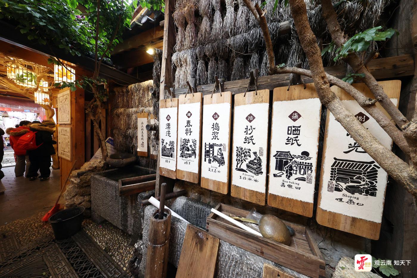 麗江古城內(nèi)以東巴文化體驗(yàn)為亮點(diǎn)的“東巴紙坊”吸引著許多中外游客。在這里,游客們可以體驗(yàn)到搗漿、抄紙、曬紙等東巴紙制作工藝,還能拿起東巴象形文字印章集章打卡。如果你好奇某個(gè)象形文字的含義,還能在這里買到一本東巴文“字典”,一一對照查看。“相比往年,今年多了不少來自新加坡、馬來西亞的游客,東巴紙燈、明信片都是很受他們喜愛的產(chǎn)品?!睎|巴紙坊麗江銷售人員韓雨辰說。
