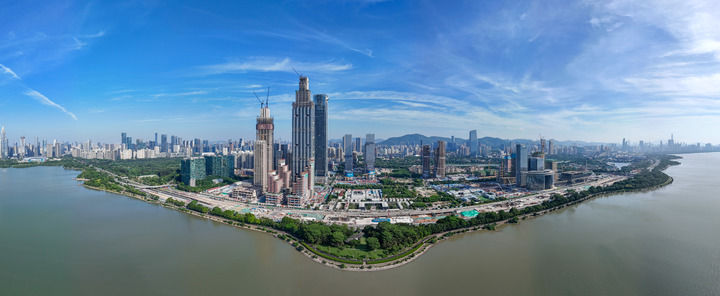 這是建設(shè)中的深圳灣超級總部基地(2024年10月3日攝,無人機全景照片)。新華社記者 梁旭 攝