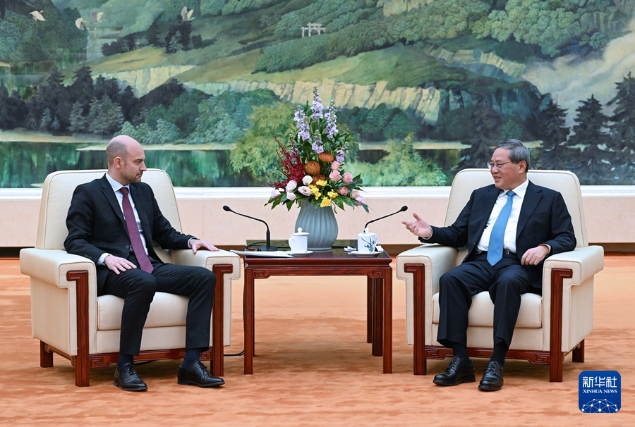 3月27日,國(guó)務(wù)院總理李強(qiáng)在北京人民大會(huì)堂會(huì)見(jiàn)法國(guó)外長(zhǎng)巴羅。新華社記者 饒愛(ài)民 攝