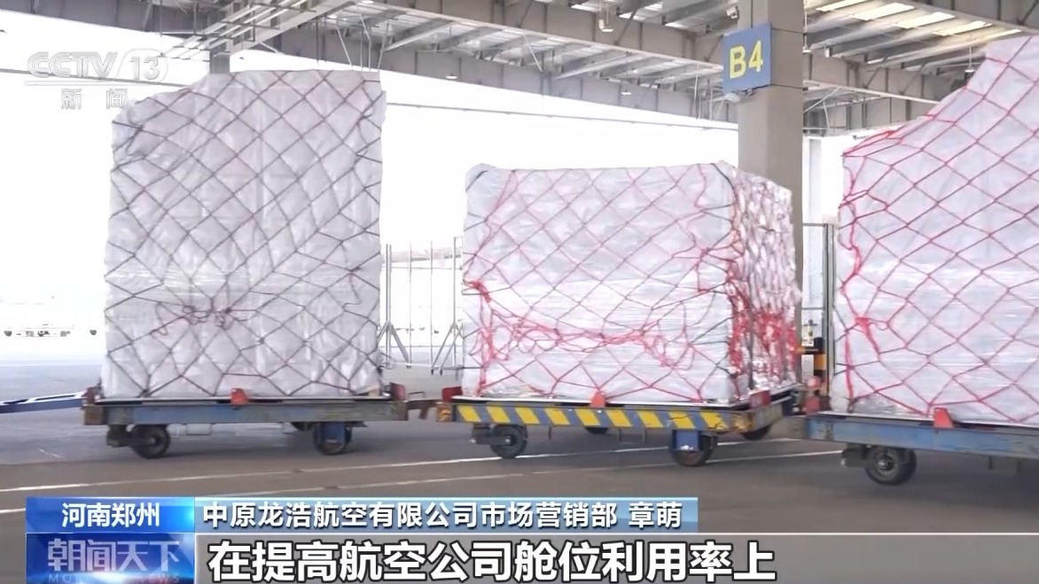 河南航空貨運發(fā)展有限公司貨運市場營銷部 李常亮:時效能夠提升3到6個小時,而且我們現(xiàn)在對中轉(zhuǎn)貨實行一次性收費,算下來相當(dāng)于我們一公斤為客戶就節(jié)省了將近4毛錢的成本。