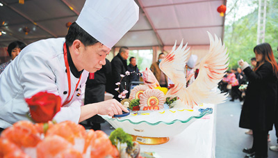 在四川南充舉辦的火鍋美食文化活動上,火鍋企業(yè)的大廚為觀眾呈現(xiàn)出一道道美食菜肴。余中華攝 中央經(jīng)濟工作會議提出,“擴大服務(wù)消費”。當前,服務(wù)消費需求加速釋放,新場景新業(yè)態(tài)新模式不斷涌現(xiàn),供需“雙向奔赴”激發(fā)市場新活力。本版今起推出“服務(wù)消費一線探訪”系列報道,聚焦餐飲、健康、文創(chuàng)、住宿等重點領(lǐng)域,深入部分省份調(diào)研探訪,剖析服務(wù)市場供需新特點、新趨勢,探討擴大服務(wù)消費新舉措。 ——編 者 春熙路、寬窄巷子、錦里古街……成都街頭人來人往;回鍋肉、麻婆豆腐、宮保雞丁……川菜館中香氣四溢。川菜作為中國八大菜系之一,擁有悠久的歷史和豐富的文化內(nèi)涵。成都是川菜的發(fā)源地之一,被聯(lián)合國教科文組織評選為“世界美食之都”。 今年的《政府工作報告》將“大力提振消費、提高投資效益,全方位擴大國內(nèi)需求”放在十大任務(wù)之首。民以食為天,餐飲業(yè)是提振消費的一個重要抓手。以麻辣鮮香為特點的川菜,餐飲文化豐富多樣,融合傳統(tǒng)與創(chuàng)新,在新消費趨勢下發(fā)展迅速。早春時節(jié),記者來到成都大街小巷,探訪餐飲業(yè)如何增加優(yōu)質(zhì)供給,加快創(chuàng)新升級,滿足市場需求。 菜品創(chuàng)新,豐富川菜口味 起鍋燒油,倒肉末,至色呈黃,再加蒜末、豆豉炒香,緊接著下豆腐,文火收汁,加入蒜苗。在成都交子公園附近的一家川菜館內(nèi),總廚鄧偉動作行云流水。他邊調(diào)整火候邊說:“起鍋時,還得撒點花椒,本地產(chǎn)的,這可是麻婆豆腐‘麻’味的精華!” 郫縣豆瓣、漢源花椒、安格斯牛肉,看似簡單的一道麻婆豆腐,實則頗有講究,盡顯川菜百味。在鄧偉看來,既要堅守傳統(tǒng)川菜風味,又要結(jié)合時代變遷和人們口味的變化,不斷守正創(chuàng)新,“春吃芽,夏吃瓜,秋吃果,冬吃根。川菜有魚香、麻辣、姜汁等24種味型,我們在創(chuàng)新菜品時,會精選食材,反復試味?!?/p> 怪味牛小排,麻辣鮮香甜,煎制后的牛肉一口咬下,汁水四溢?!皞鹘y(tǒng)川菜中的怪味,一般多用于涼菜,我們則創(chuàng)新到熱菜上使用,從選取食材到烹飪手法,多次試驗。”鄧偉說,反復調(diào)整了10多天,這才制成怪味牛小排,新菜一經(jīng)推出,就獲得好評。陳釀豆瓣銀鱈魚、糯米樟茶鴨……在他手中,傳統(tǒng)川菜有了更多創(chuàng)意。 記者走進另一家位于成都錦江區(qū)水井坊的川菜店,熊貓文創(chuàng)小吃展臺映入眼簾,熊貓造型的點心各式各樣,軟糯可愛。傍晚6點,從馬來西亞來成都旅游的一家人特意趕來,打卡地道川菜。餐前,弟弟杰克第一時間把拍攝的糖油果子短視頻發(fā)到社交媒體,分享給網(wǎng)友。而熊貓造型的甜點“天府鮮果熊貓”,讓杰克“心都化了”,留到最后才舍得吃。 “春天,我們制作熊貓青團,餡料選的是宜賓產(chǎn)的芽菜。夏季,鮮果熊貓的食材就用來自龍泉驛的水蜜桃,到了秋天,攀枝花的芒果必不可少?!痹撻T店負責人許凡介紹,除深耕傳統(tǒng)川菜外,他們還創(chuàng)新菜品,熊貓造型的文創(chuàng)小吃吸引不少游客,讓游客們既能打卡熊貓文創(chuàng),又能品嘗川菜。 近年來,川菜頻頻出圈,以調(diào)味多變、菜式多樣俘獲了眾多美食愛好者的心,紛紛趕來成都體驗。當下,成都正深入挖掘川菜發(fā)展新模式,以川菜吸引更多人前來生活旅游,通過“傳承+創(chuàng)新”提升川菜吸引力。 “通過加強美食品牌培育,全市有20家餐廳上榜‘2025黑珍珠餐廳指南’,73家餐廳上榜‘2025成都米其林指南’?!背啥际猩虅?wù)局相關(guān)負責人介紹,老字號也得守正創(chuàng)新,目前成都共有四川老字號67個,中華老字號23個,涵蓋了飲食、川調(diào)等多個品類。成都餐飲消費提質(zhì)擴容,國際美食之都的“金字招牌”越擦越亮,2024年,成都餐飲收入1933.7億元,同比增長6.2%。 “川菜一直在融合發(fā)展的路上,人口流動推動生活方式、飲食文化的融合,川菜通過融合更有生命力。要提振川菜消費,還要繼續(xù)推動川菜融合創(chuàng)新?!敝袊埖陞f(xié)會名廚專業(yè)委員會常務(wù)副主席、川菜文化全球推廣大使邱克洪說,“川菜烹飪技法和味型比較豐富。交通閉塞的時候,川菜食材相對匱乏,現(xiàn)在我們把各地新食材引入川菜,給消費者提供不同的舌尖體驗。” 豐富場景,改善消費體驗 每到3月,賞花是不少市民游客的“固定節(jié)目”。春花爛漫,美食正鮮,在成都崇州隆興鎮(zhèn)梁景村,一頂頂白色帳篷散落在黃燦燦的油菜花海中。遠處藍天白云,近處油菜花金黃?;ㄌ镩g,火紅的鍋底沸騰,毛肚、蝦滑、牛肉一股腦兒放進鍋中,火鍋的辛香和著花海的芬芳瞬間撲鼻而來。 “全村有1400多畝油菜花田,每年一到3月份,來觀賞油菜花的游客就多了起來,周末村里一天能接待好幾萬人?!绷壕按妩h委書記張建軍說,“游客在我們這兒,除了能把春天收藏在相冊中,還能把春天煮進火鍋里。村里聯(lián)合企業(yè)推出花田火鍋,創(chuàng)新消費場景,豐富消費體驗。” “每年3月都是旺季,大家喜歡在花田里感受自然風光,我們就把火鍋和賞花結(jié)合了起來?!碧諠橇壕按寤ㄌ锘疱伒呢撠熑?,“我們的花田火鍋需要提前三天甚至一周預訂,平均每天能有40多桌,很多都是一大家子來的?!闭f話間,手機響起,電話那頭傳來了顧