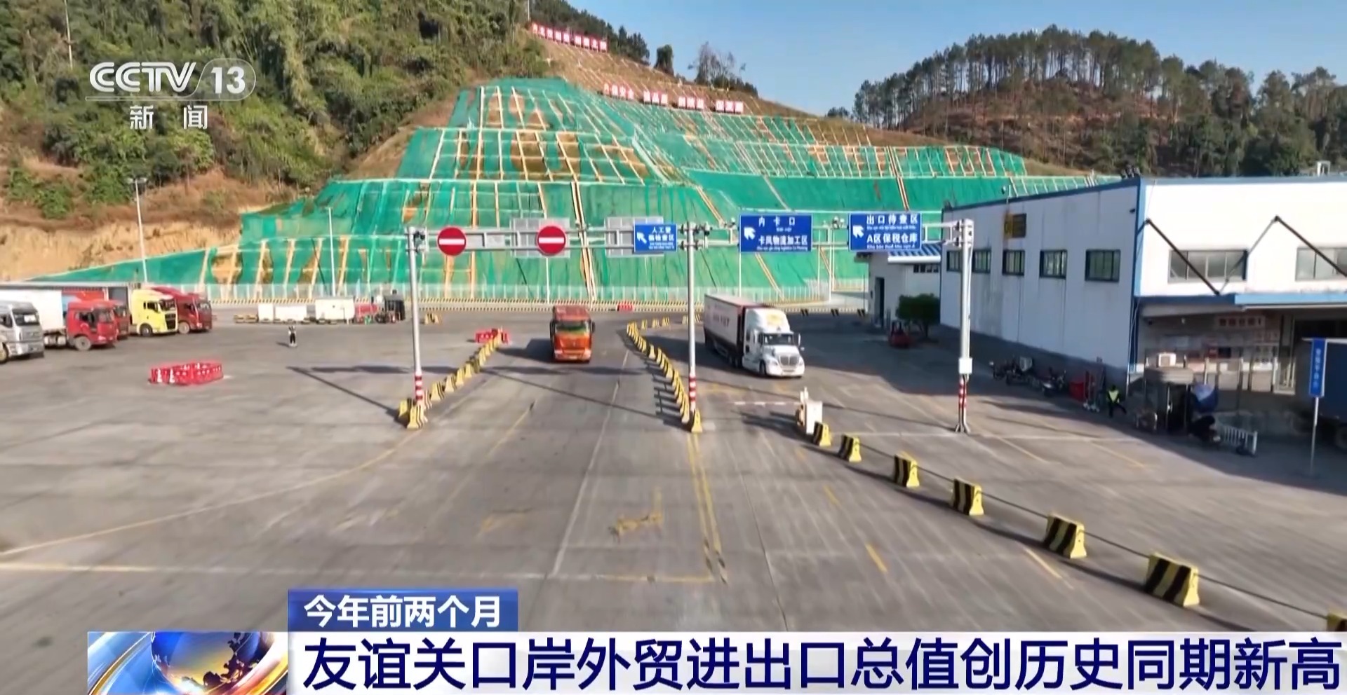 據友誼關海關統(tǒng)計,今年前兩個月,經友誼關口岸進出口貨值728.9億元,同比增長10.9%,創(chuàng)歷史新高;進出口貨運量85萬噸,同比增長38.3%。進出境車輛11.4萬輛,同比增長10.2%。