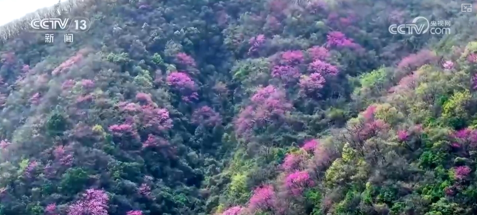 這兩天,在湖北宜都市的群山深處,一片綿延3000多畝的野生巨紫荊群落花開(kāi)正艷。放眼望去,無(wú)邊的粉紫色如同潑灑的顏料,浸染在山巒上,微風(fēng)拂過(guò),花海泛起紫色漣漪。