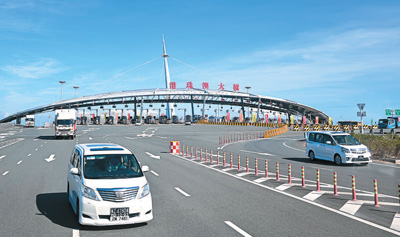 圖為車輛經(jīng)港珠澳大橋抵達(dá)珠海。中新社記者 陳驥旻攝