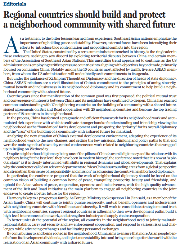 原文標(biāo)題:Regional countries should build and protect a neighborhood community with shared future