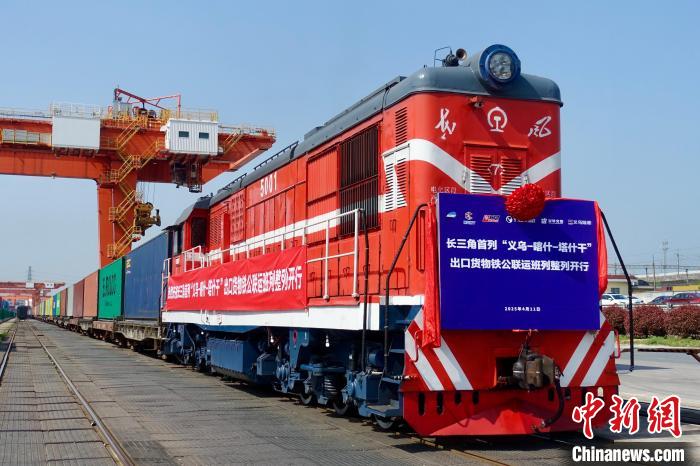 一列滿載100個標(biāo)準(zhǔn)集裝箱出口日用商品的貨運班列,11日從位于浙江的鐵路義烏西站開出,駛向新疆喀什北口岸,這批貨物隨后將從該口岸由汽車轉(zhuǎn)運至烏茲別克斯坦首都塔什干,標(biāo)志著長三角首趟出口貨物鐵公聯(lián)運班列(整列)成功開行。