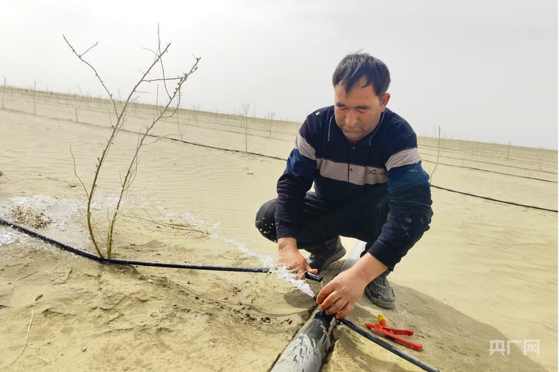 阿布杜熱合曼·麥麥提經(jīng)營著一個(gè)汽車裝潢坐墊廠,起初對在沙漠里種植持懷疑態(tài)度,試種10畝地看到收益后,在全家人的支持下,他毅然承包了380畝地。如今,他每天都干勁十足地穿梭于田間,并憧憬著將桃子通過冷鏈銷往全國各省市。