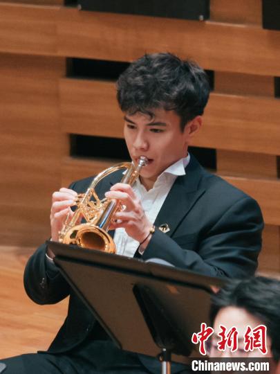 四川交響樂團(tuán)的排練廳里,今年28歲的小號(hào)手楊寓棠深吸一口氣,嘴唇抵上號(hào)嘴,指尖自如起落,《成都》耳熟能詳?shù)男蓮慕鹕√?hào)中流淌而出。這是臺(tái)灣青年楊寓棠在成都工作、生活的第七年。除樂手身份之外,他還成為一名成都女婿,與這座城市建立起更加緊密的情感聯(lián)系。