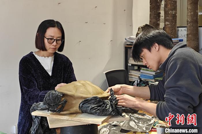 4月1日,李詩維(左一)帶領(lǐng)泉州工藝美術(shù)職業(yè)學(xué)院的學(xué)生創(chuàng)作陶瓷作品。 吳冠標 攝